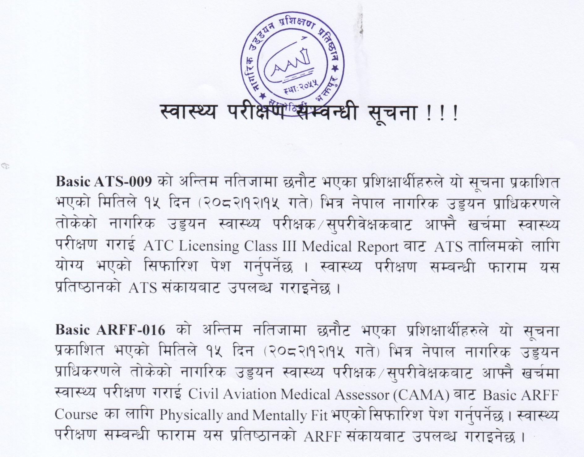 स्वास्थ्य परीक्षण सम्बन्धी सूचना