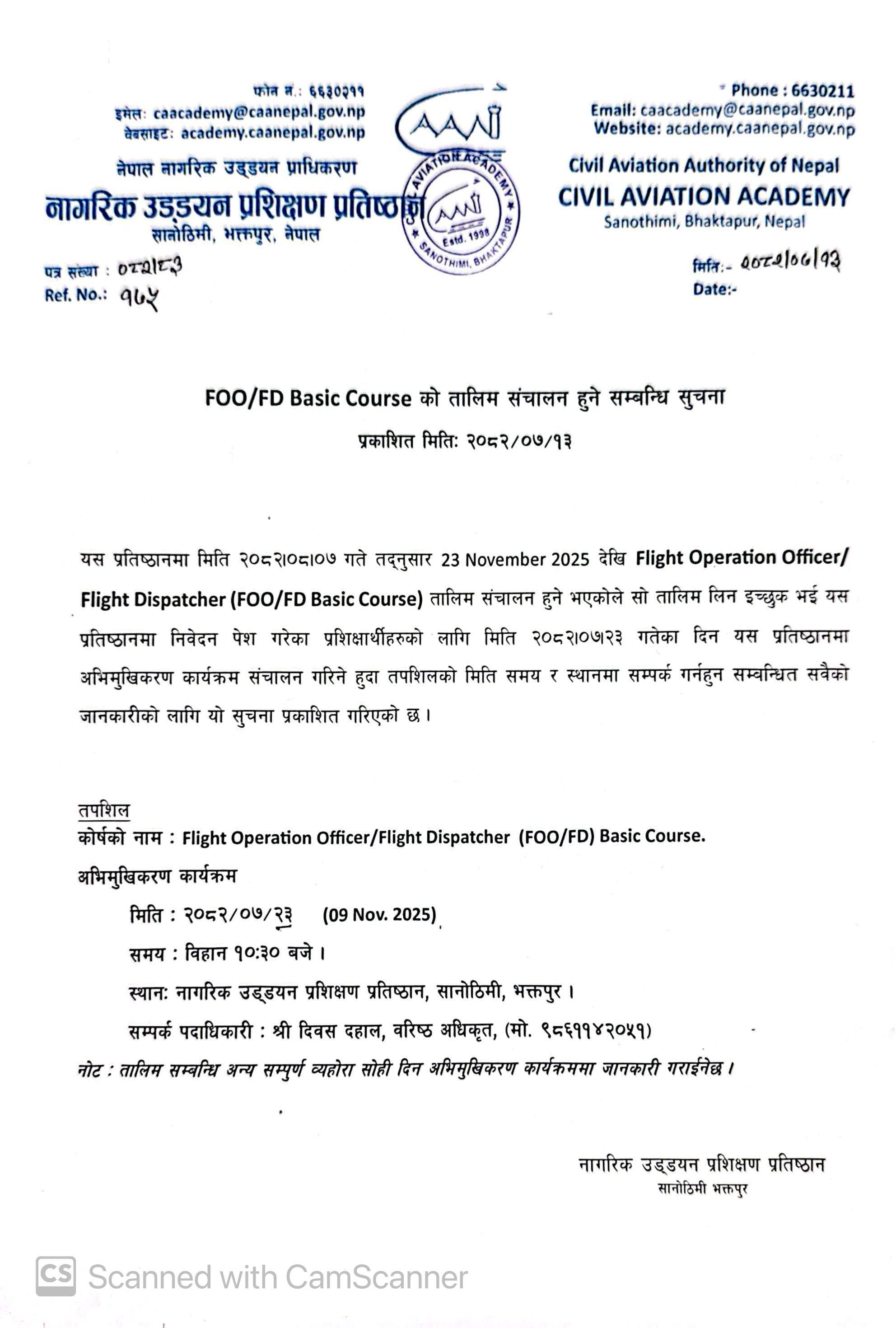 FOO/FD Basic Course Training सन्चालन सम्बन्धि